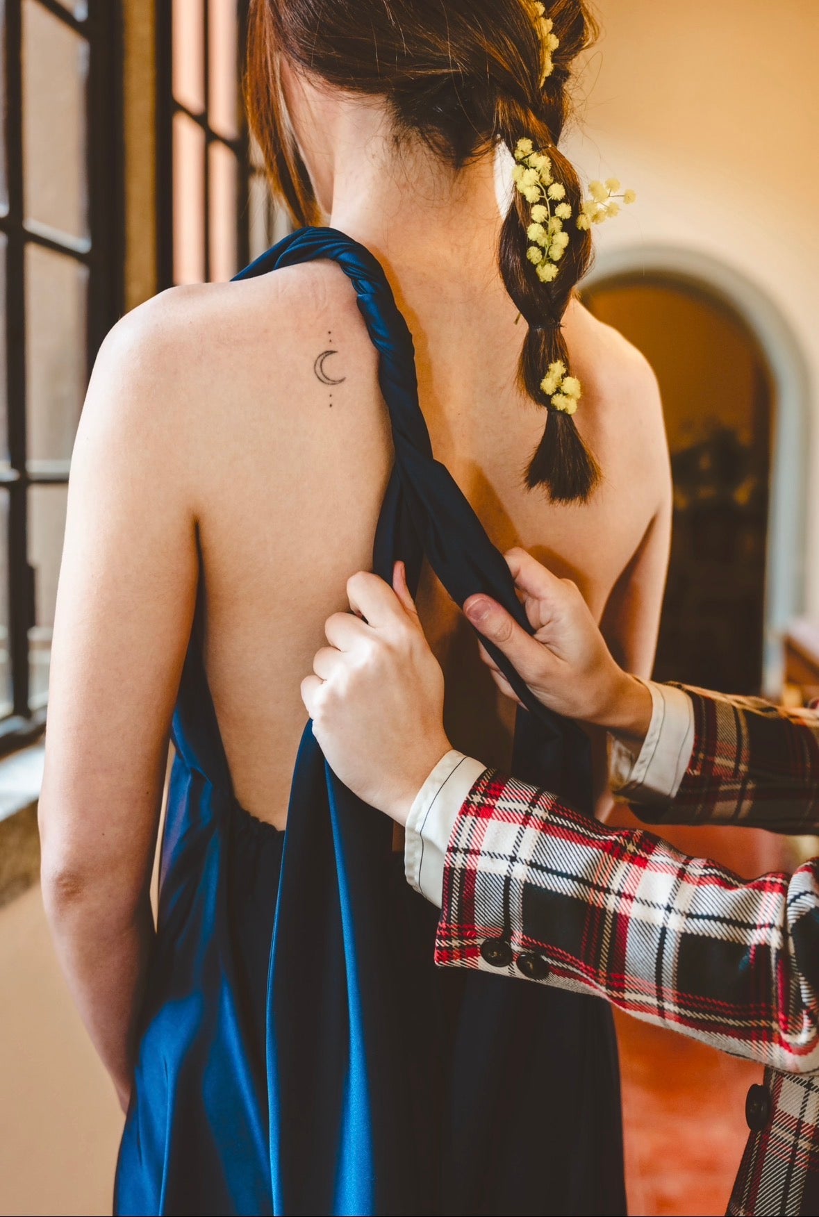 I nostri abiti sono realizzati secondo una taglia standard, con una vestibilità semi-su misura pensata per adattarsi al corpo e valorizzare diverse fisicità.